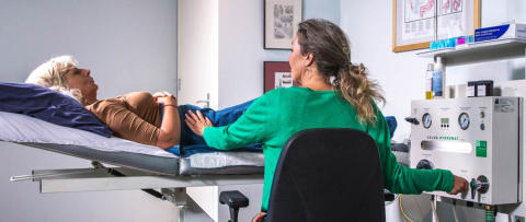 Daarna gaat de cliënt op de rug liggen. Het